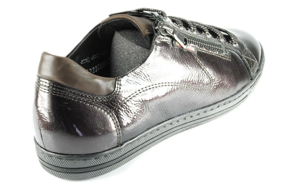 Dessus/Tige en Cuir vernis fripé, doublure peau, avec une semelle intérieure Mobils Ergonomic amovible et extérieure caoutchouc.