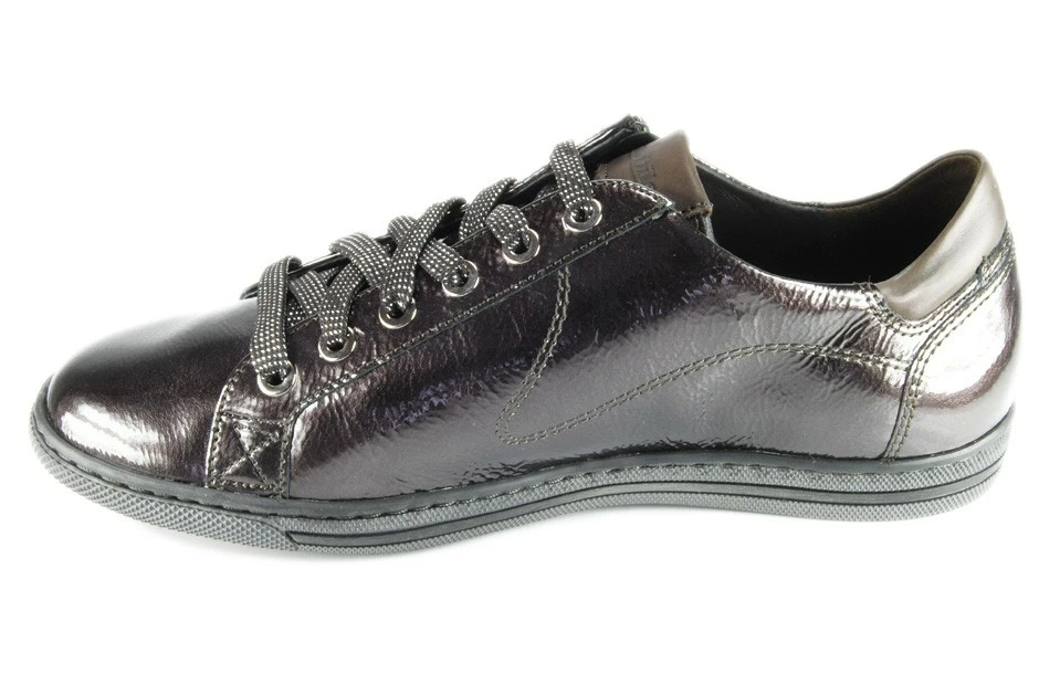 Excellent derby pour femme de la marque Mephisto, décliné cette saison en finition Bronze sur cuir vernis fripé.